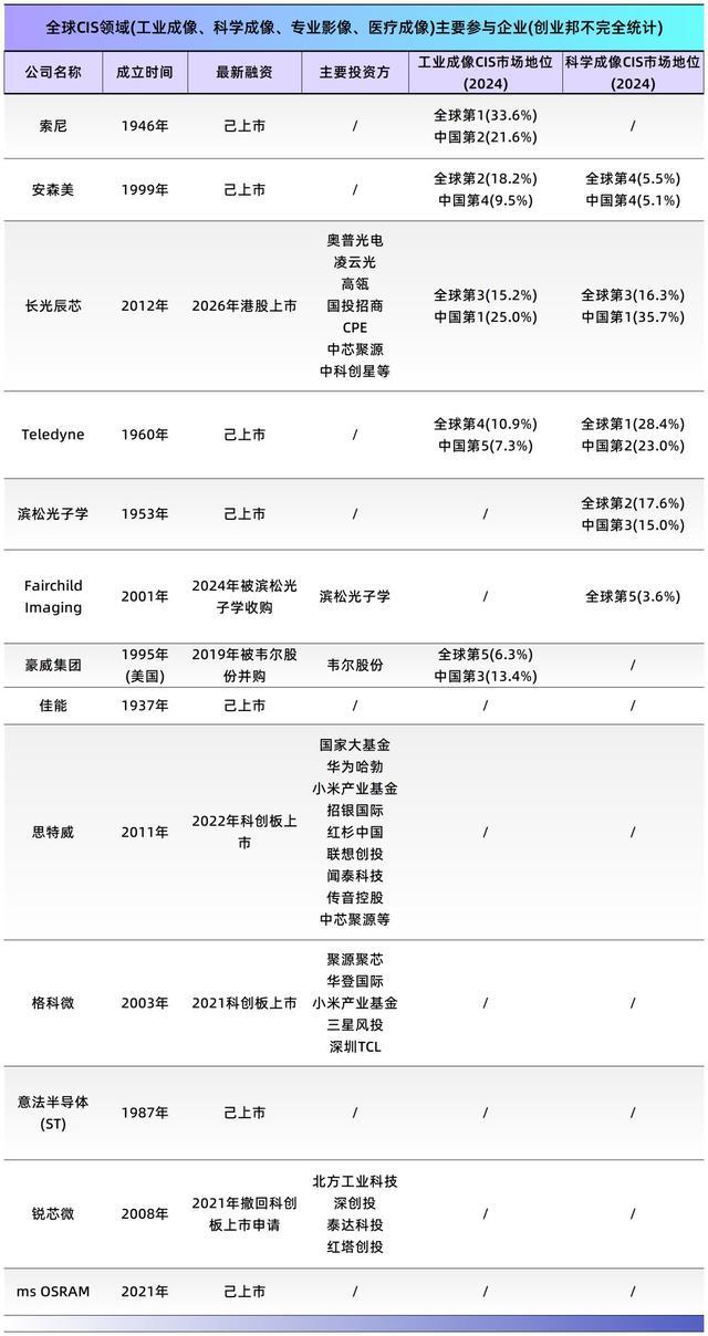 国内厂商同样在加速追赶。豪威集团目前在全球工业成像CIS市场排名第五(6.3%),但在中国市场已升至第三(13.4%),是长光辰芯在国内最强的对手。思特威从安防起家,正快速向工业和机器视觉领域渗透。格科微则以消费级为主,在工业领域处于第二梯队。