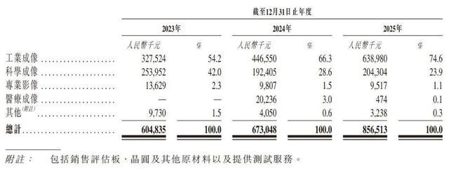 长光辰芯能够在全球高端CIS赛道站稳脚跟,核心在于成立之初就主动避开手机等消费级红海。在消费级市场,仅索尼、三星两家就占去约67%份额,后来者很难突围。因此,公司聚焦工业成像、科学成像、专业影像和医疗成像四个高端应用场景。其中,前两个场景成为公司的主要收入来源,2025年合计收入占比达到98.5%。